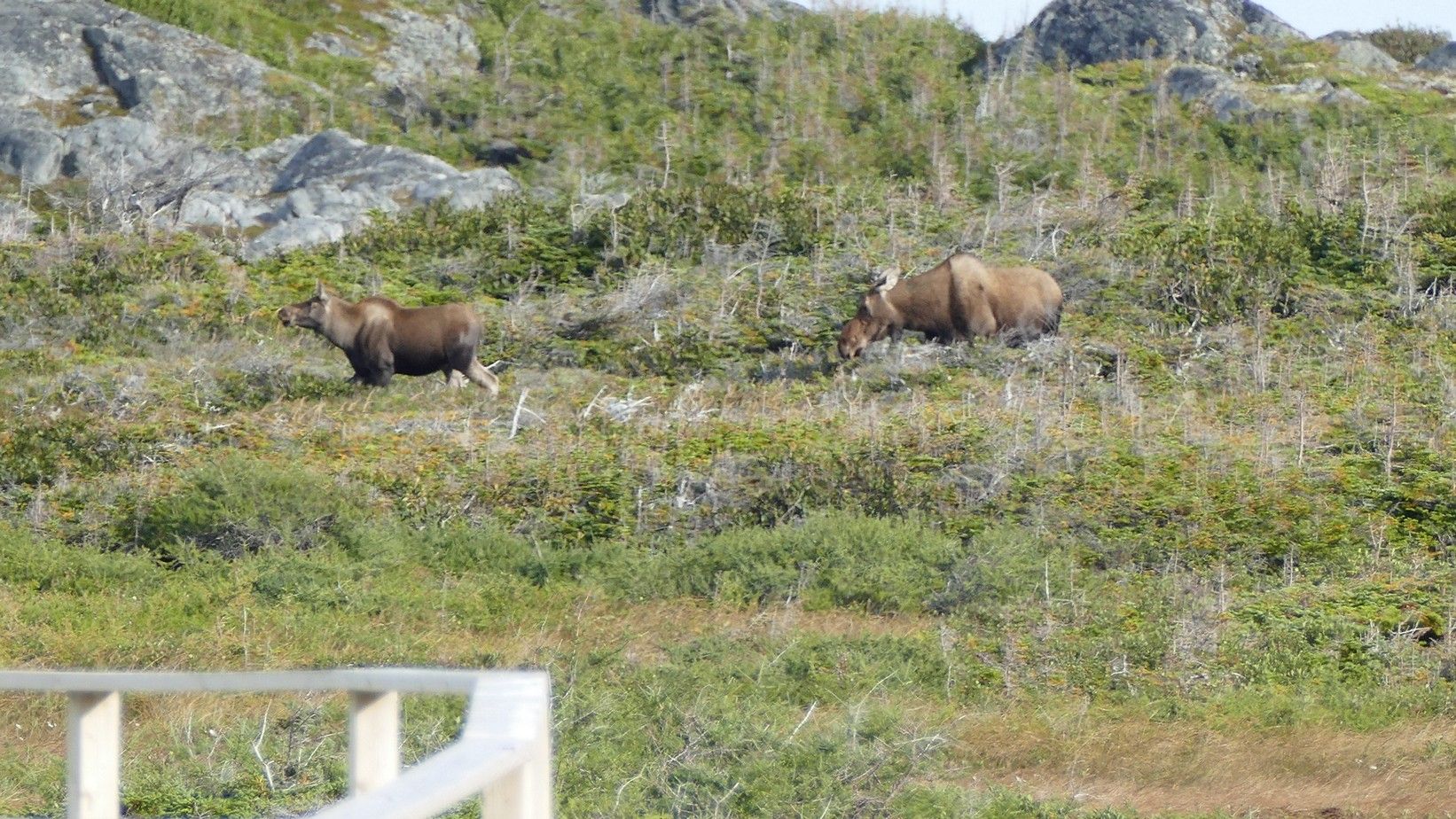 A moose and her calf. Not a great shot - they were quite far away.