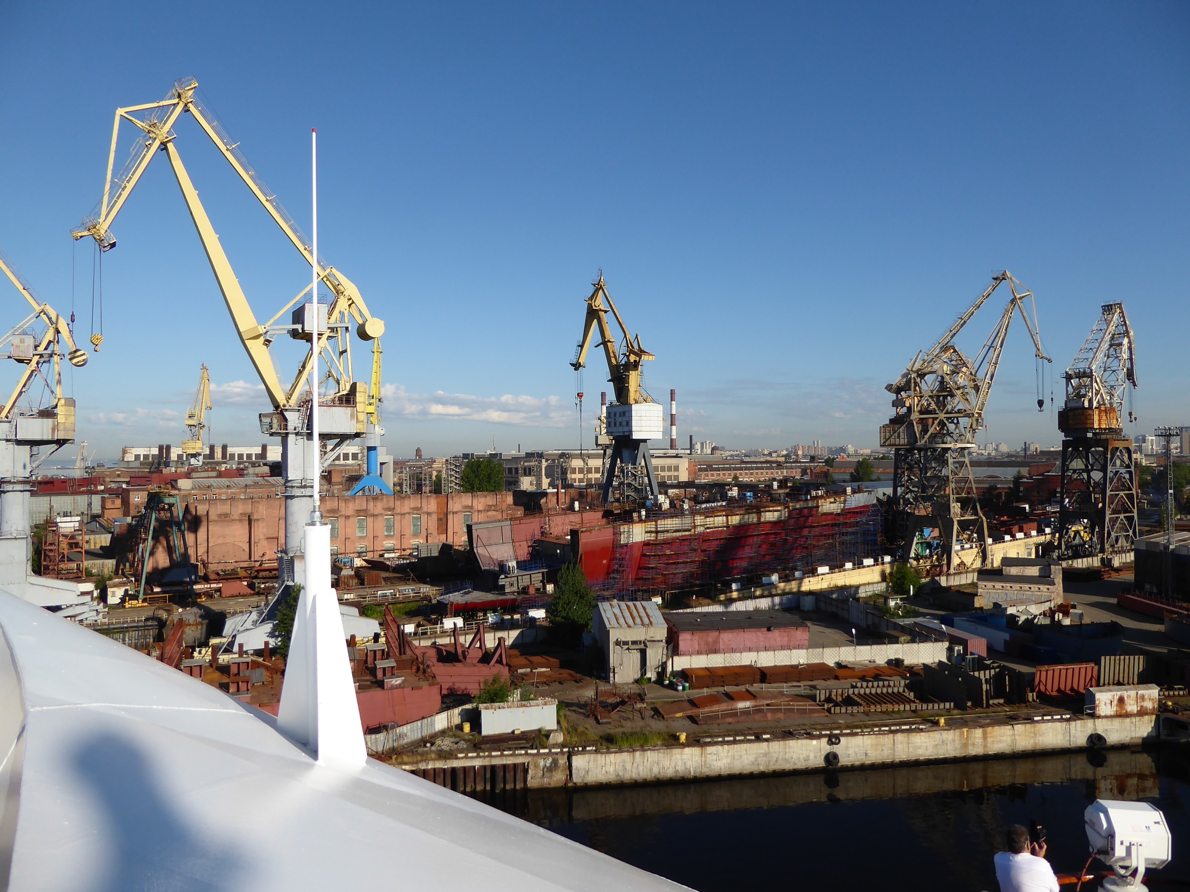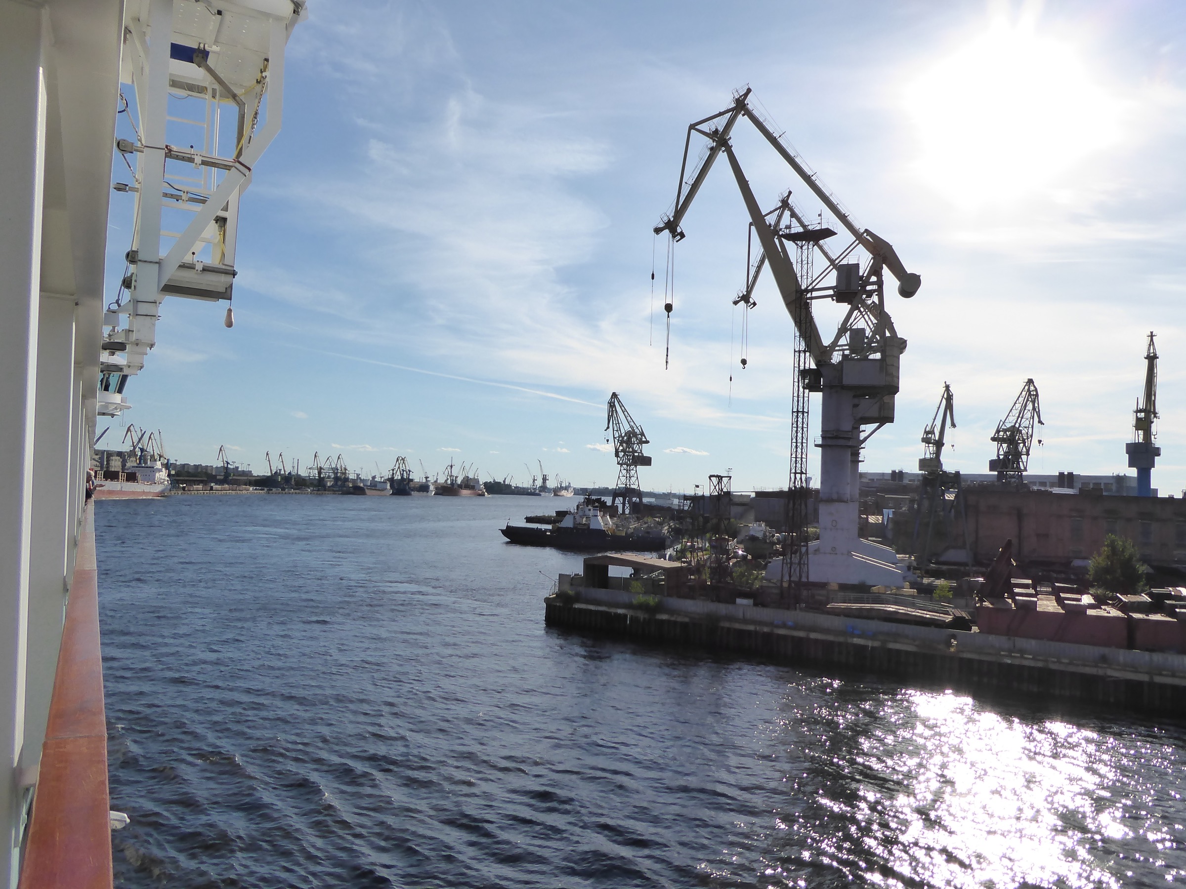 Here's a few shots taken as we came into St. Petersburg. There are literally hundreds of the ship cranes. Big ones, small ones.
