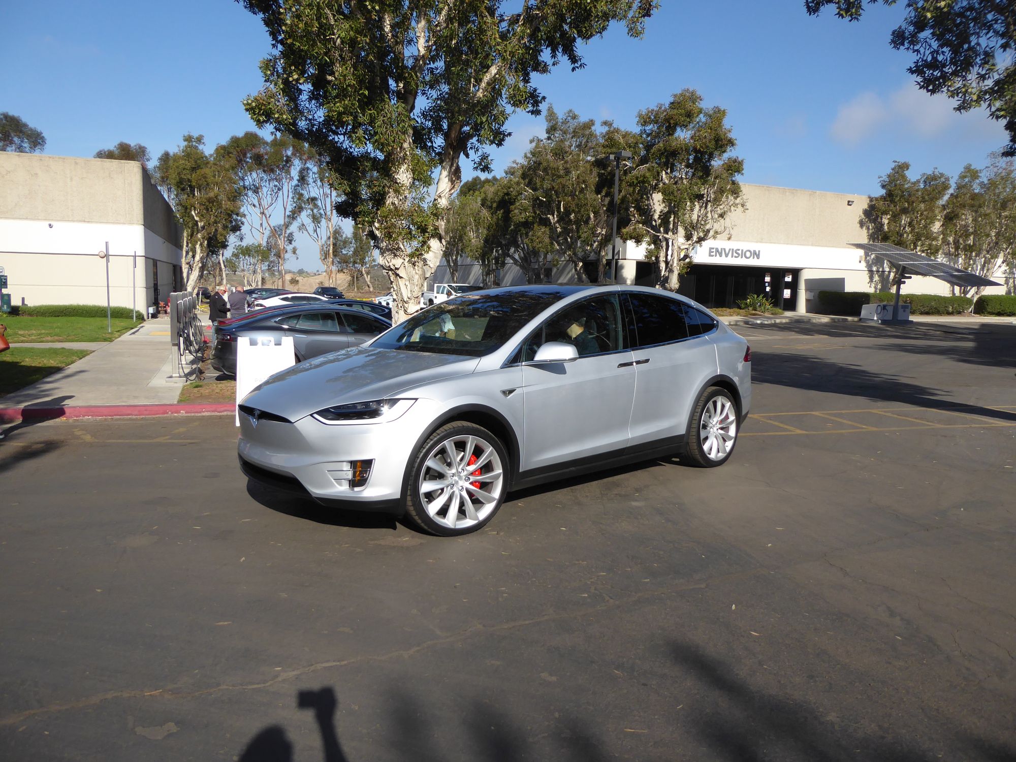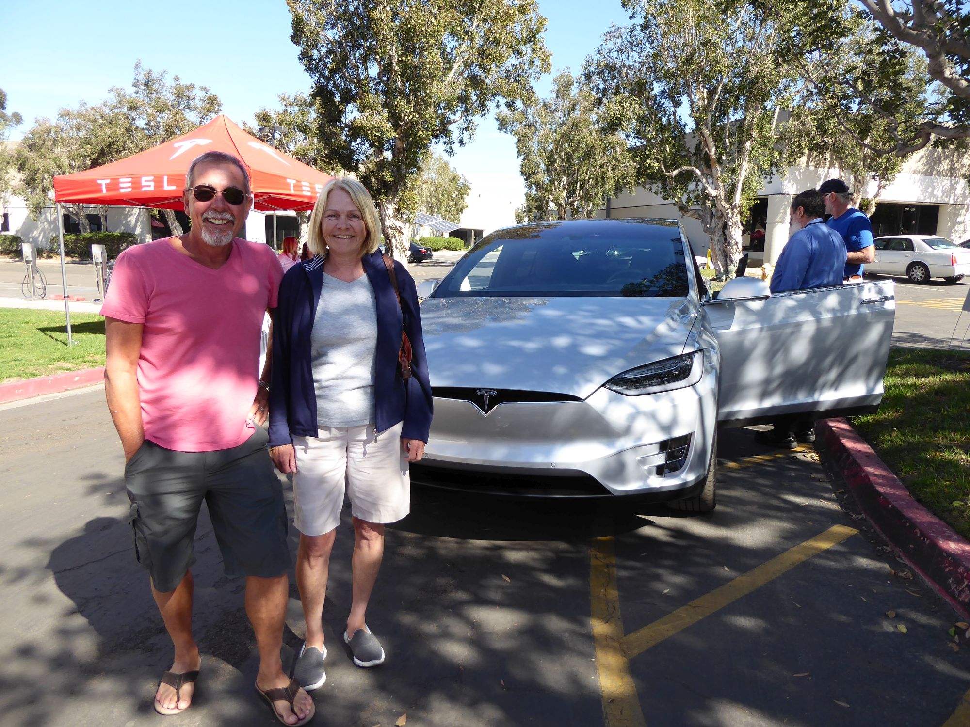 We are (at least I am) big fans of Tesla electric cars. We put a deposit on their SUV model - the Model X in December 2014 and it's finally available for purchase. It's unlikely we'll actually go through with it as the Canadian $ is sucking so bad but who knows...??? Recently we were notified that they were going to have a few cars in San Diego and we were invited to come there for a test drive.
