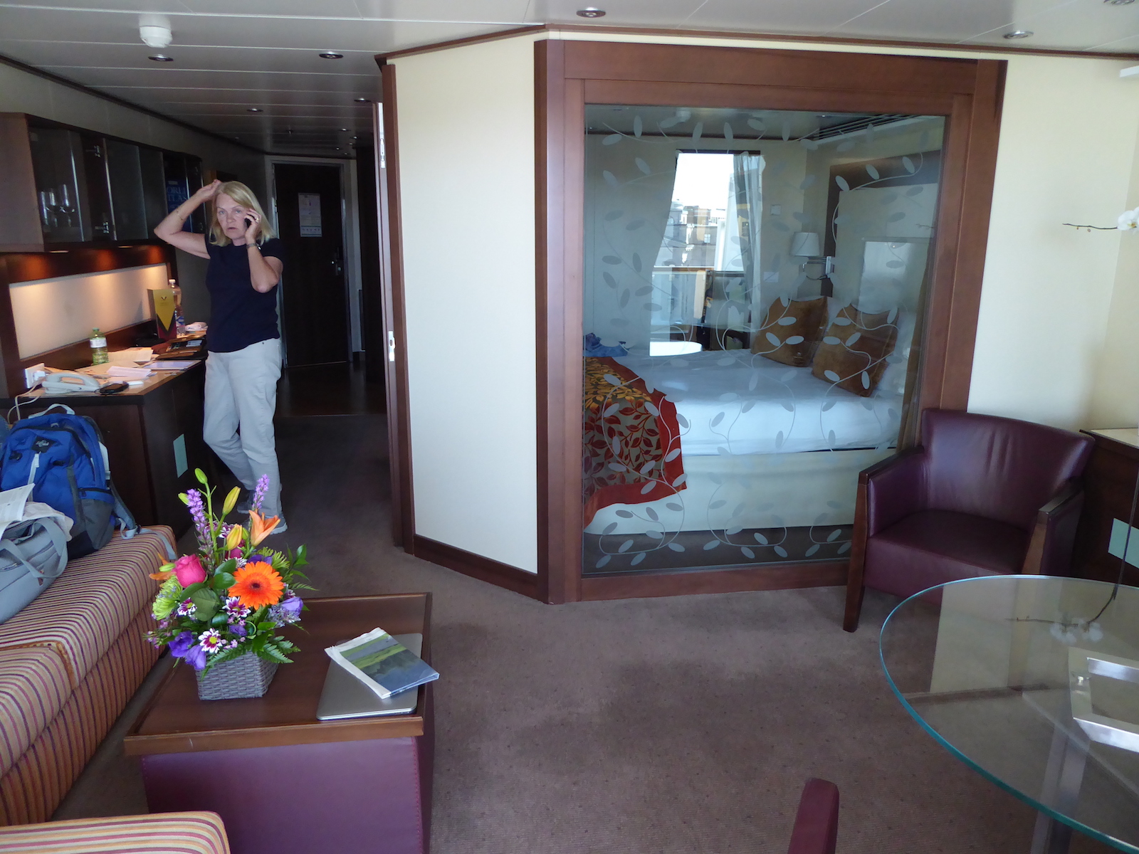 We upgraded our room to a Penthouse Suite. How hoity-toity of us. It was a huge room - 460 square feet (or something like that). The bed room is enclosed in glass - go figure...???