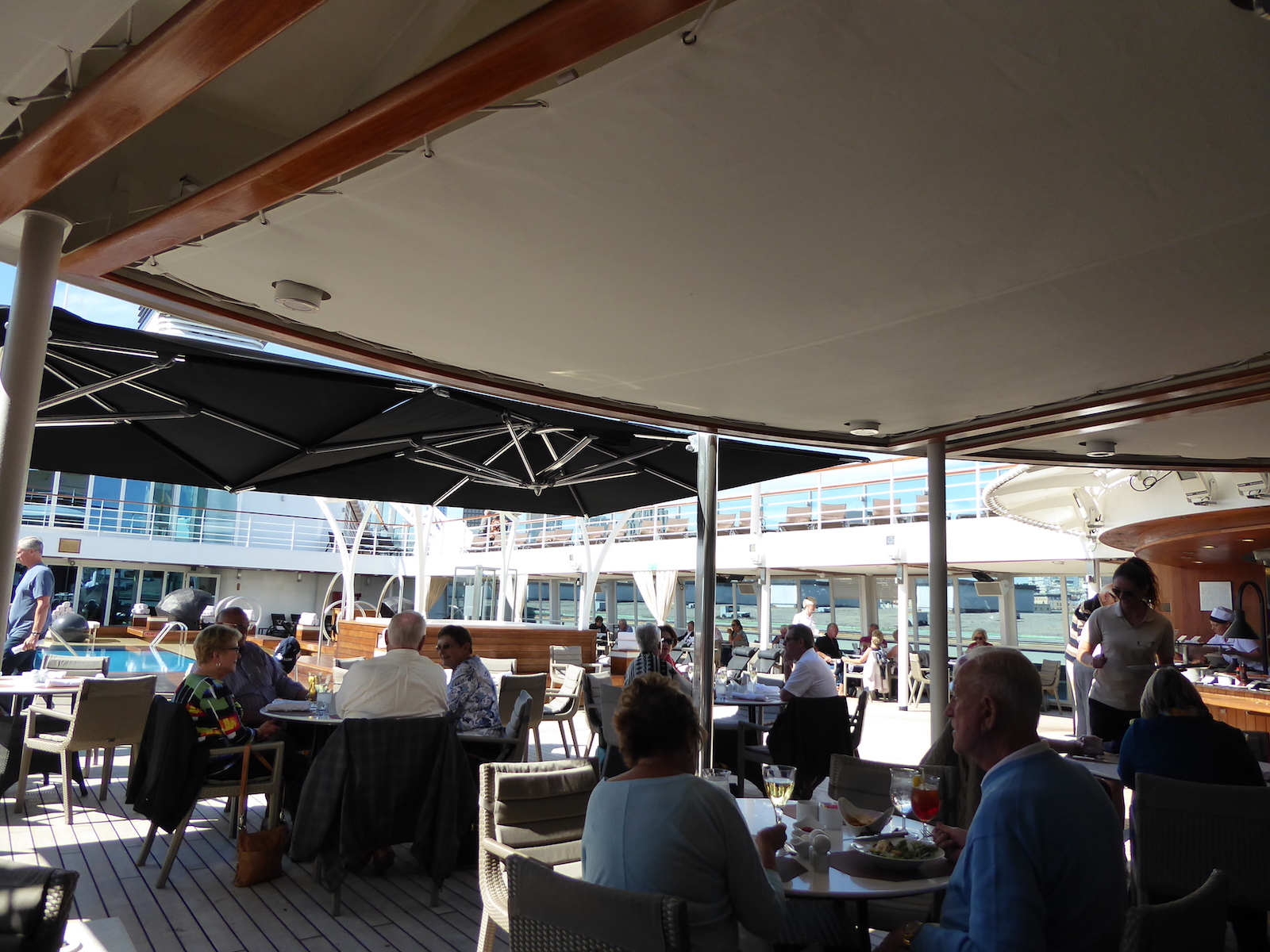 This is the poolside grill. They also serve an evening meal here if the weather cooperates and we probably ate half of dinners here. They have radiant heaters and heavy blankets for the nippy evenings.