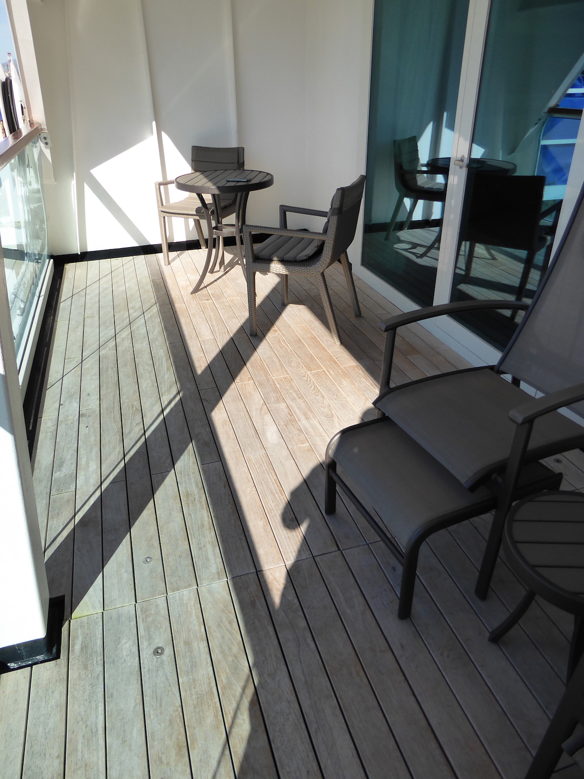 The balcony is a good size too. We didn't use it very much as it turned out we were on the wrong sided (the shady side) of the ship most days.
