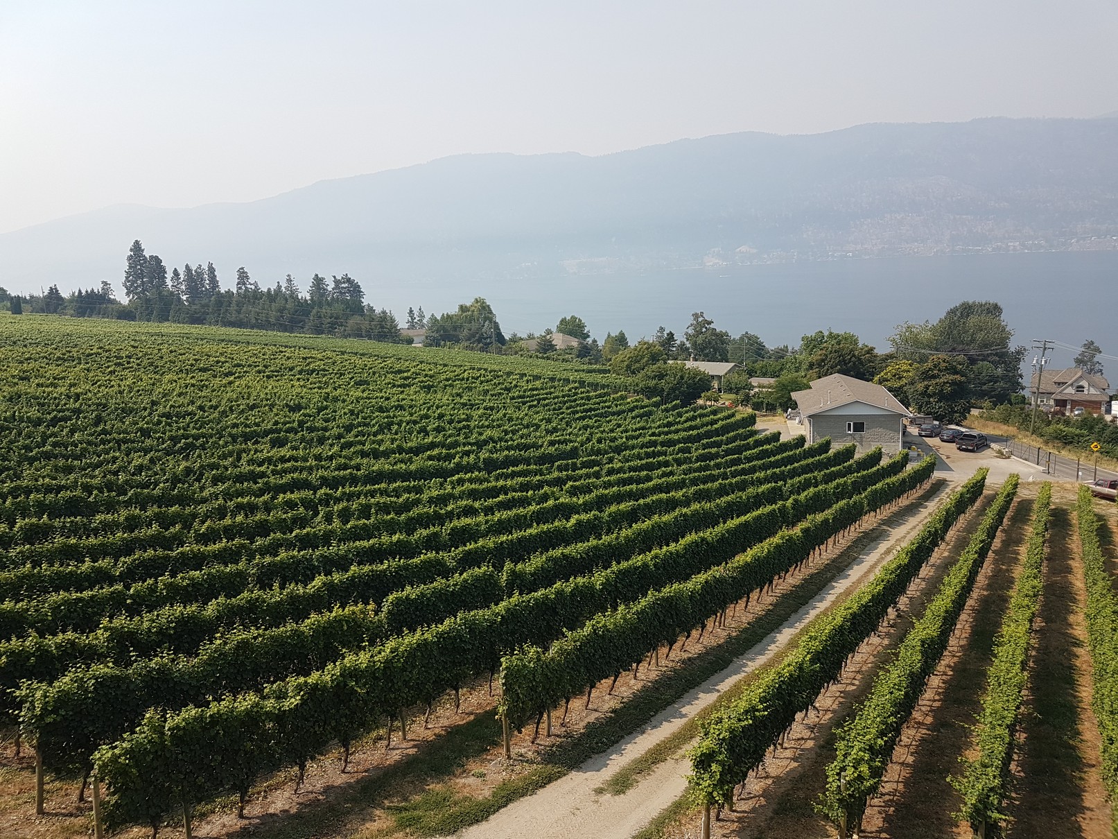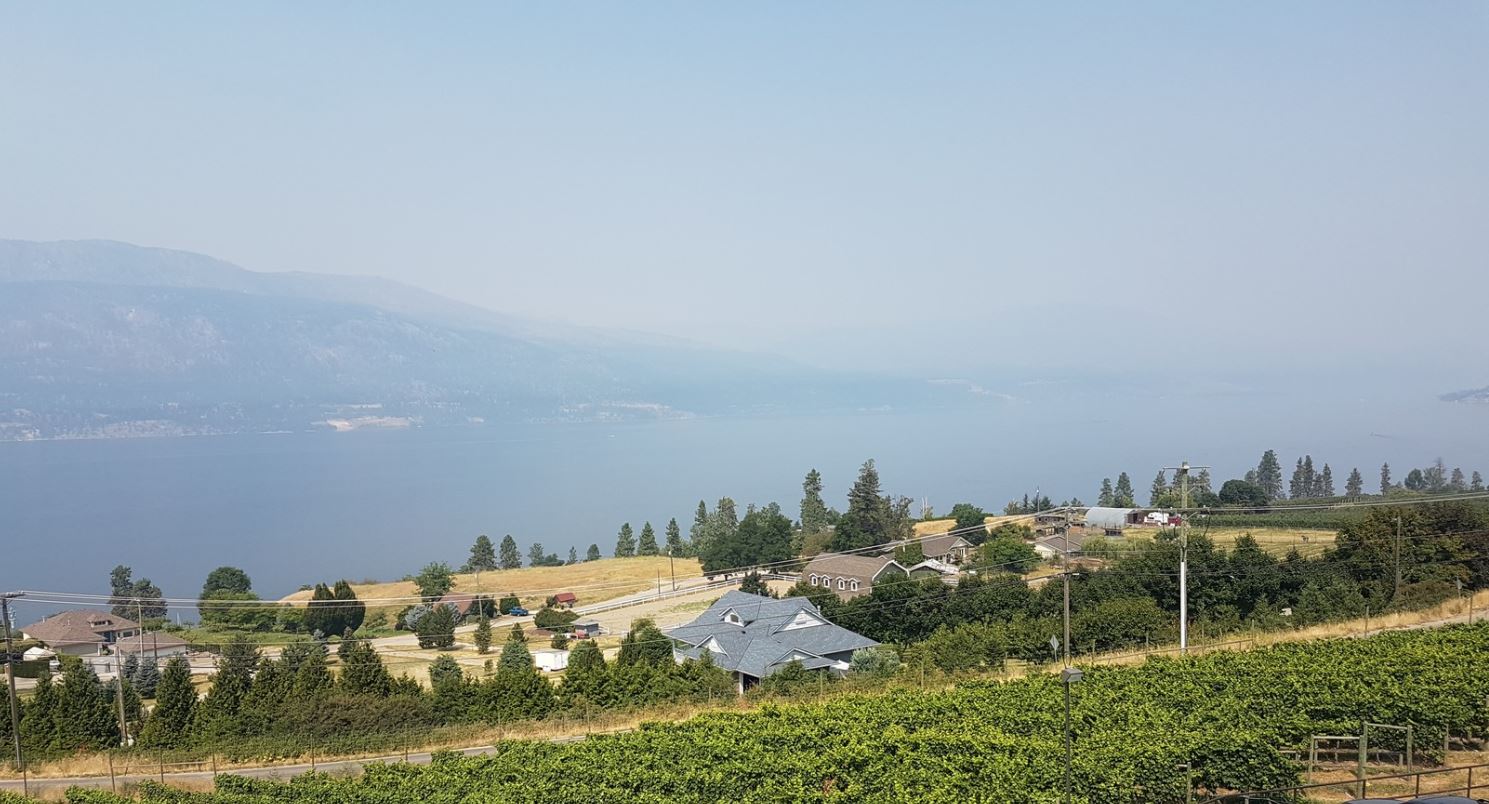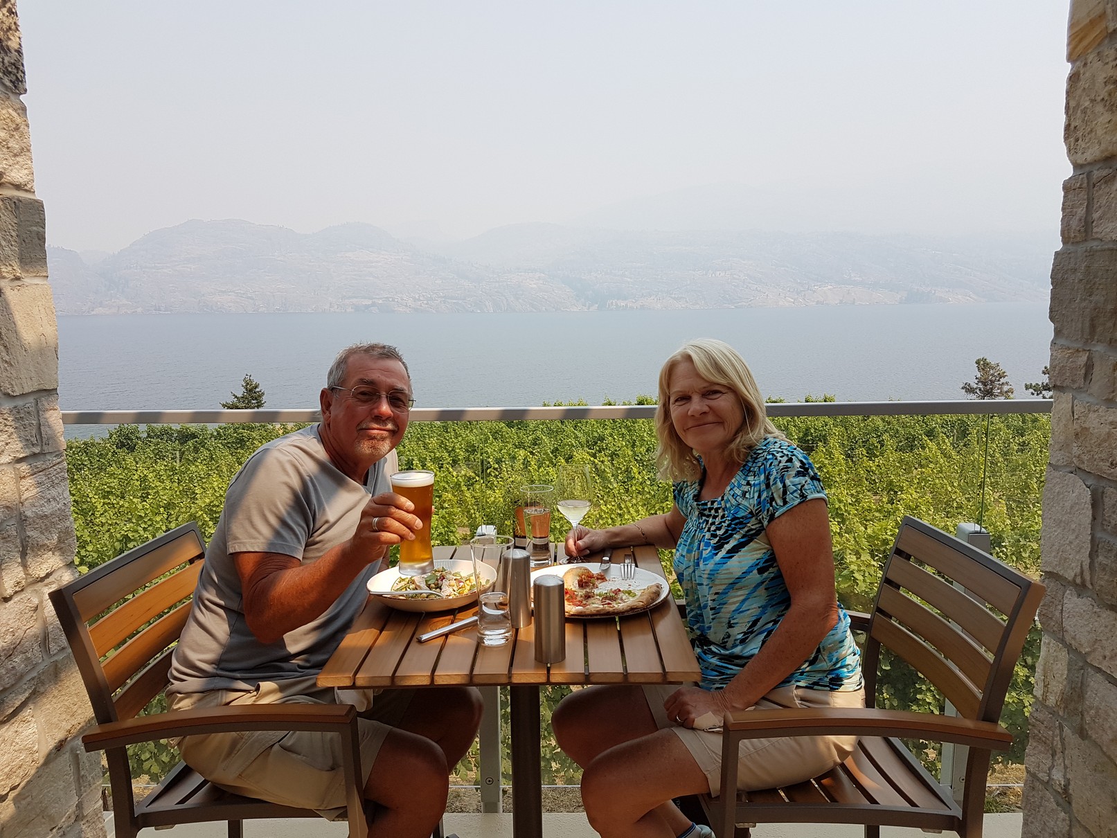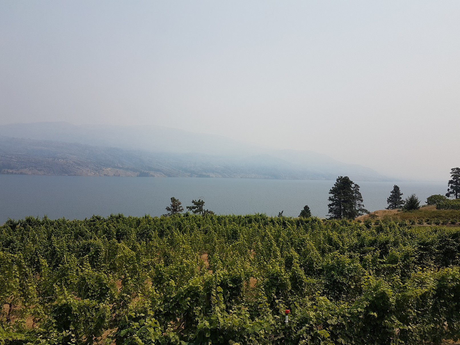 So we went to lunch early and they found us a nice table with a pretty nice view of the vineyards and the lake...more smoke.