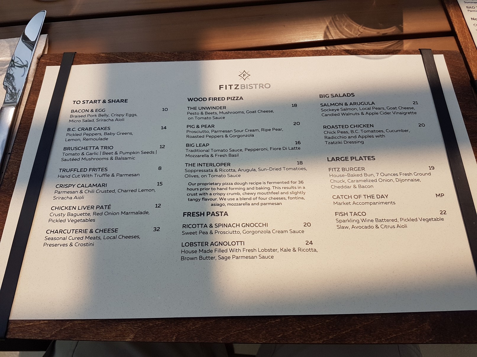 The menu. Fairly reasonable prices. Portions were good. Food tasty.