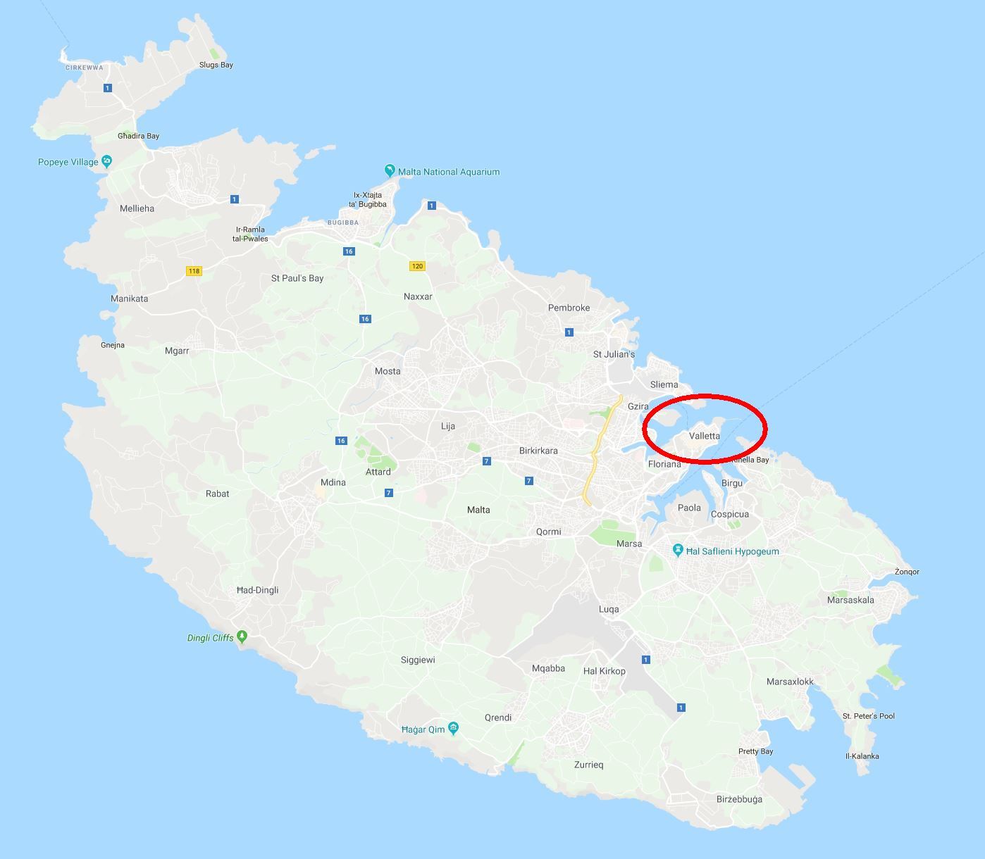 Valletta is the capital city of the island of Malta. It's a very small city with not a large population. You can see on the map below that is situated on a natural habour and that is why it has been an important port for ages.