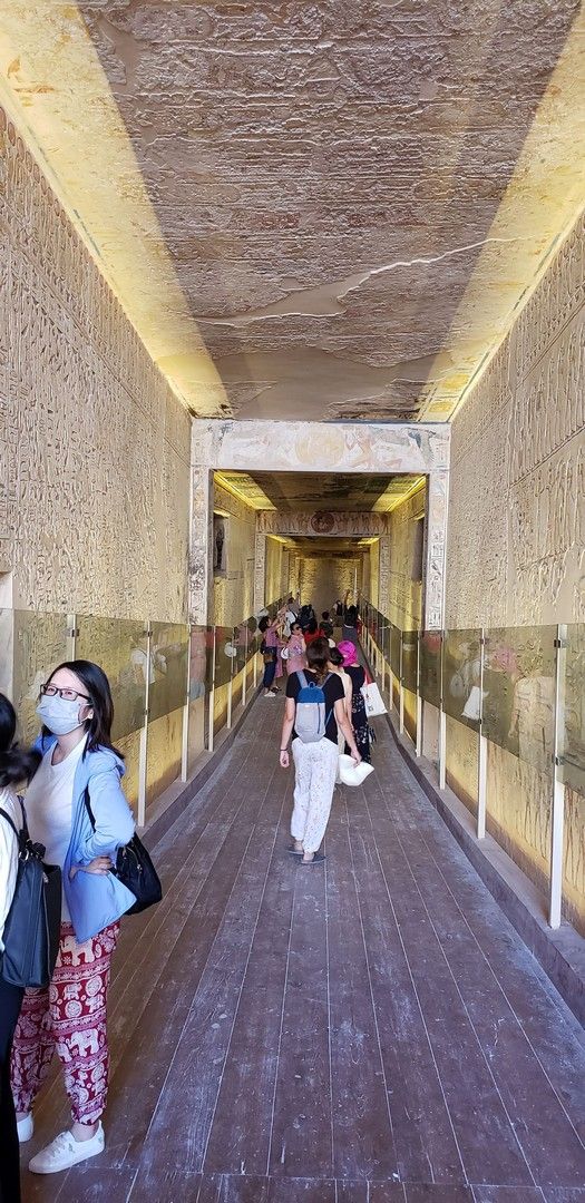 The entry was is pretty similar to all the tombs here. A long walkway with scads of wall carvings and oriental tourists in face masks. I guess they heard about the curse of King Tut's tomb and weren't taking any chances.